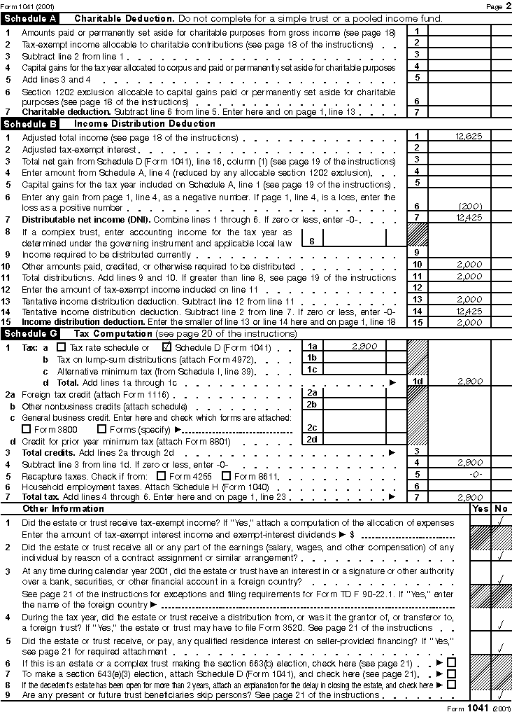The taxable income of the estate for 2001 is $10,025, figured as follows: