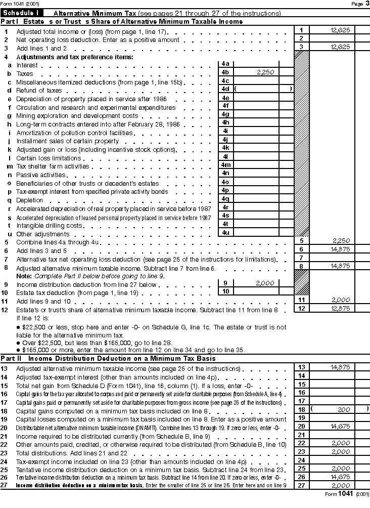 The estate took an income distribution deduction, so you must prepare Schedule I (Form 1041), Alternative Minimum Tax, regardless of