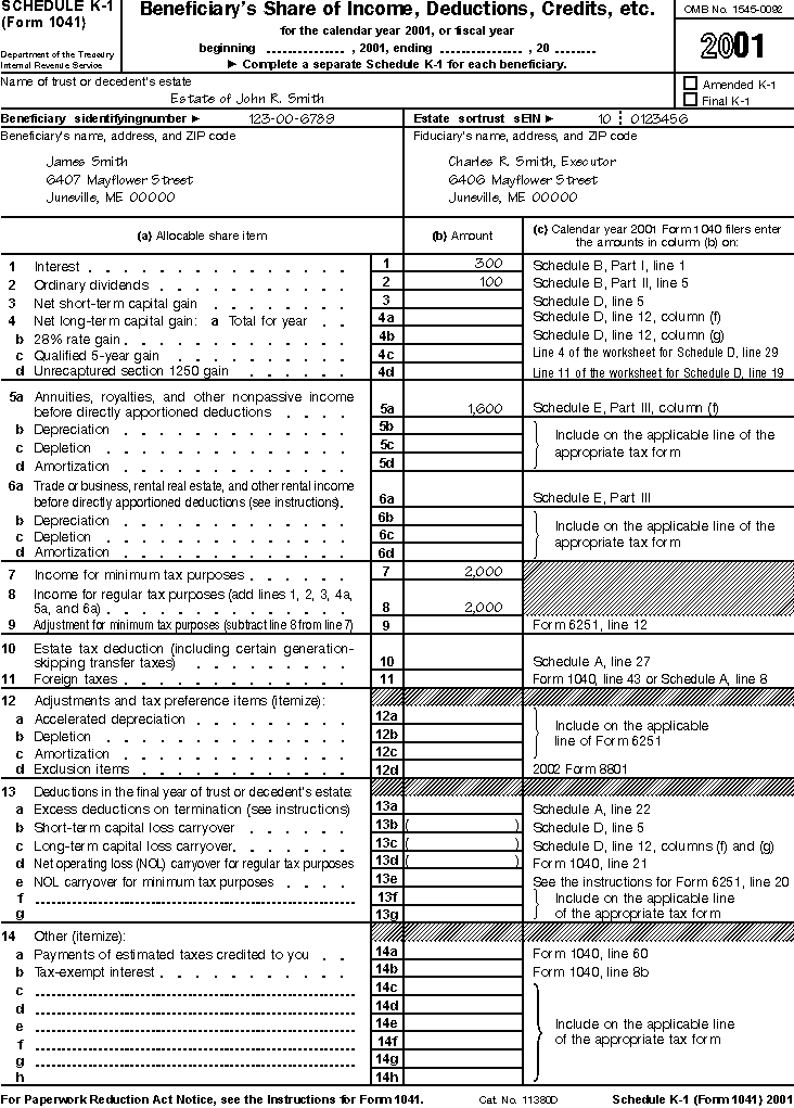 Schedule K-1 (Form 1041) for the estate of John R. Smith