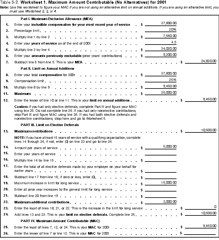 Table 5-2. Worksheet 1. Maximum Amount Contributable for 2001