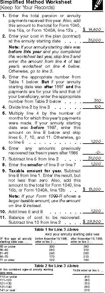 annuitant, use Table 2 at the bottom of the worksheet to determine the