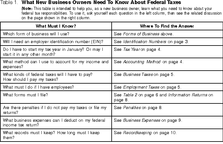 Table 1. What New Business Owners Need To Know About Federal Taxes