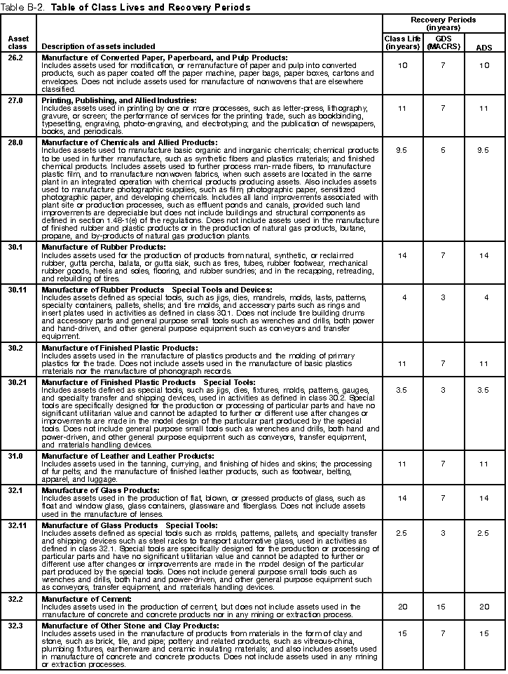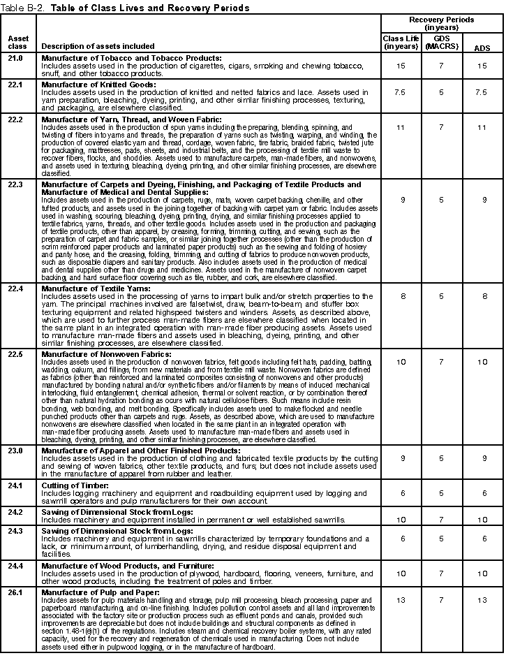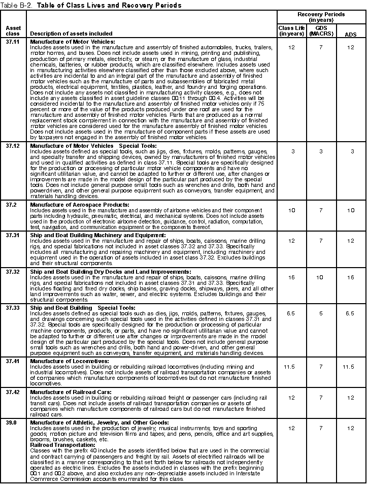 in that asset class. If it is, use the recovery period shown in the appropriate column of Table B-2 following the description of the activity. If the