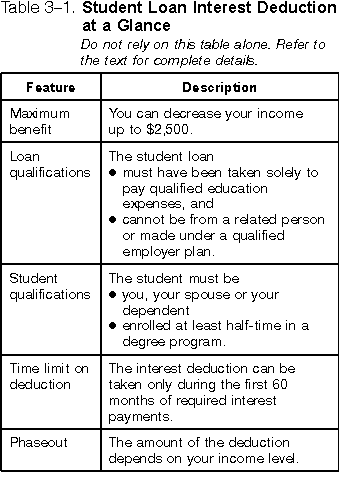 You cannot deduct as interest on a student loan any amount you can deduct under any other provision of the tax law (for example, home mortgage