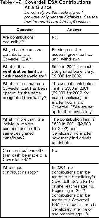 The total of all contributions to all Coverdell ESAs set up for the benefit of any one designated beneficiary cannot be more than $500 in 2001
