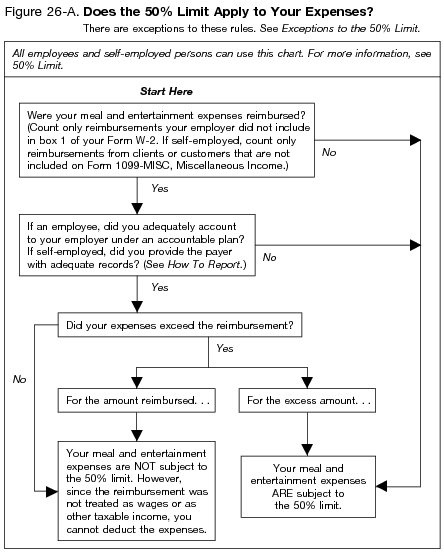 Certain meal and entertainment expenses are subject to a 50% limit. If you are an employee, you figure this limit on line
