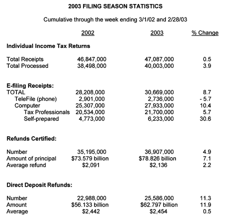 - Self-prepared e-file returns are 6.2 million, a 30.6 percent increase from last year;