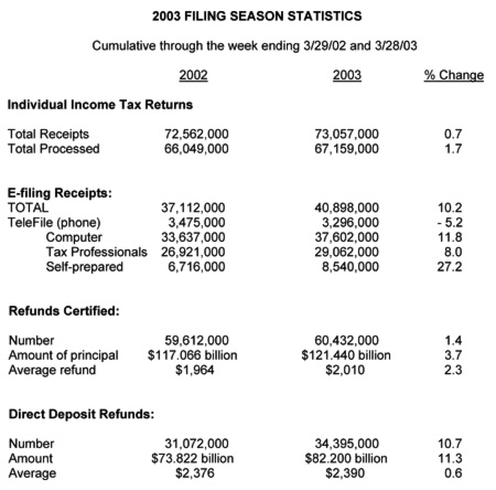 The IRS has received more than 73 million returns and processed more than 60 million refunds, totaling more than $121 billion. At $2,010, the average refund is 2.3 percent greater than at this time last year.