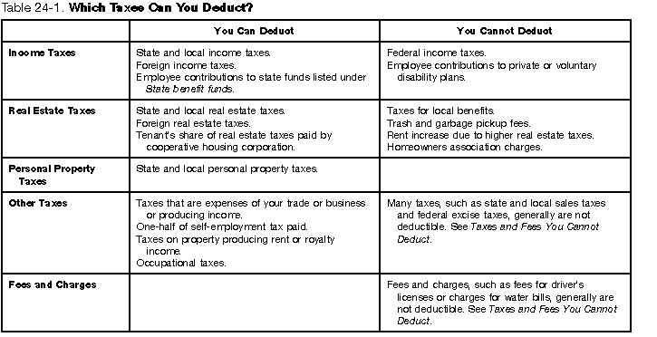 Table 24-1. Which Taxes Can You Deduct?