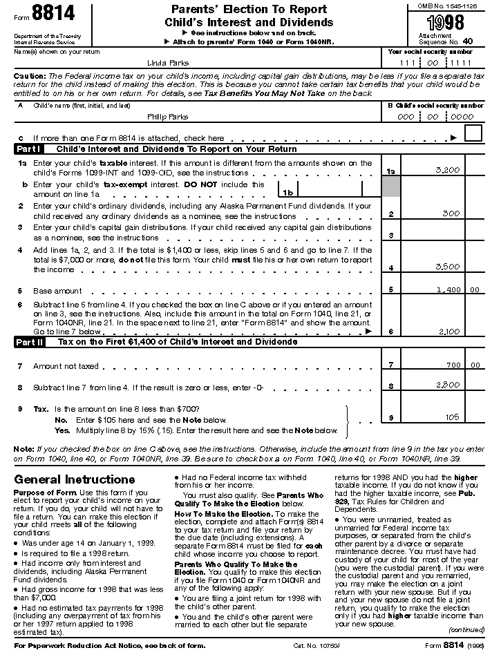 or Form 1040NR. Attach a separate Form 8814 for each child for whom
