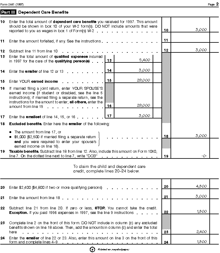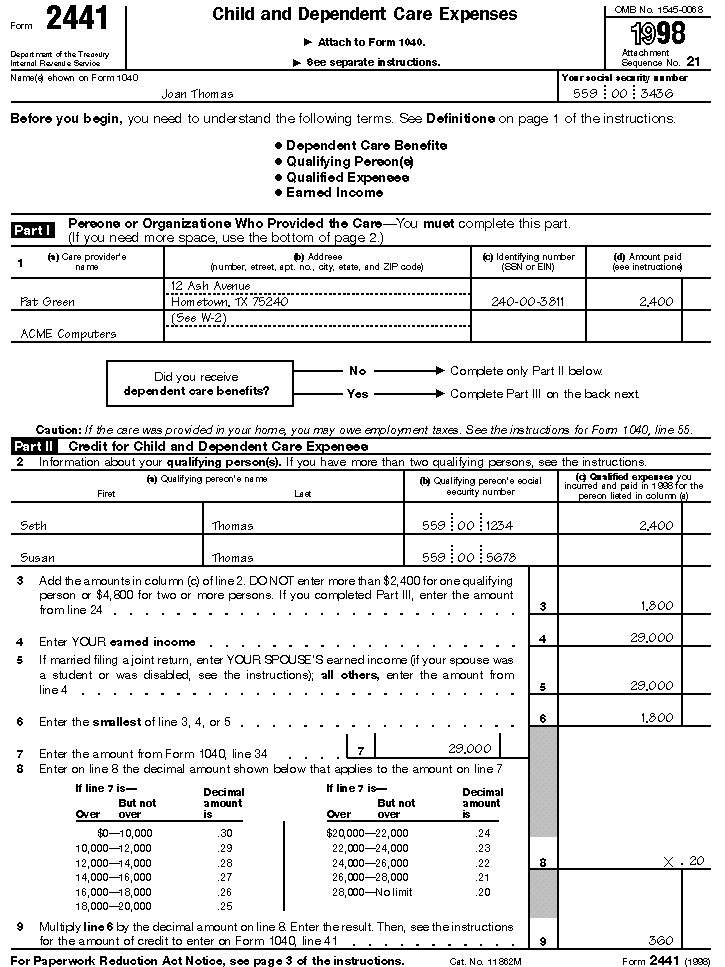 filled-in Form 2441 is shown at the end of this chapter.