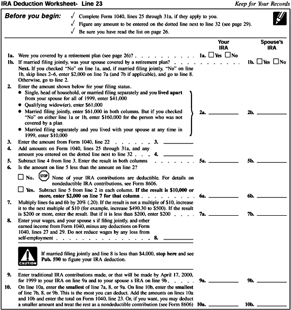IRA Deduction Worksheet
