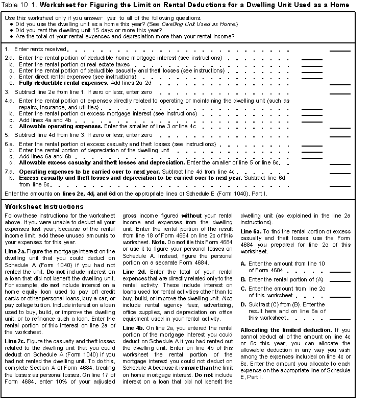 Table 10-1 Worksheet for figuring limit on rental deductions