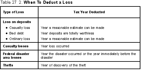 Table 27-2. When to Deduct a Loss