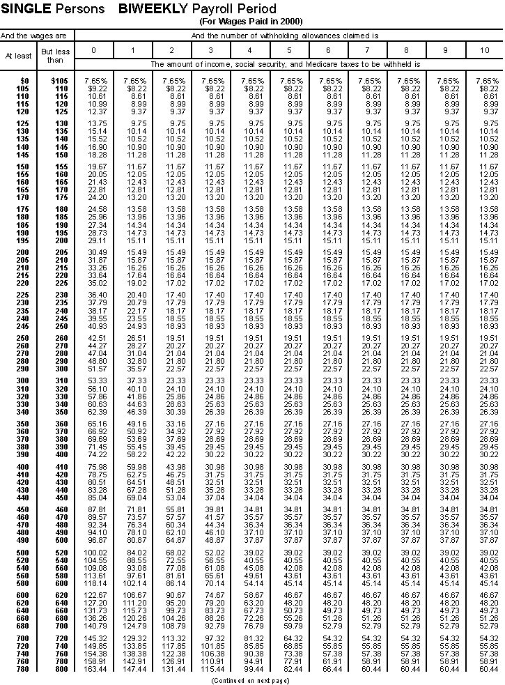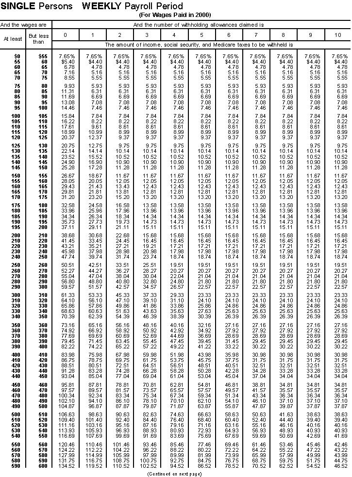 - Single Persons - Weekly, Paid Wages $0 - $600