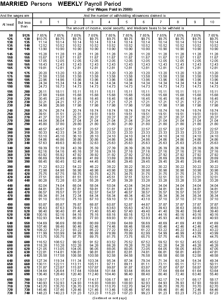 - Married Persons - Weekly, Paid Wages $0 - $740