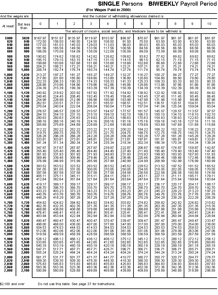 - Single Persons - Bi-Weekly, Paid Wages $800 - $2100