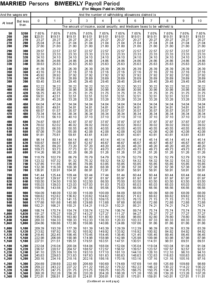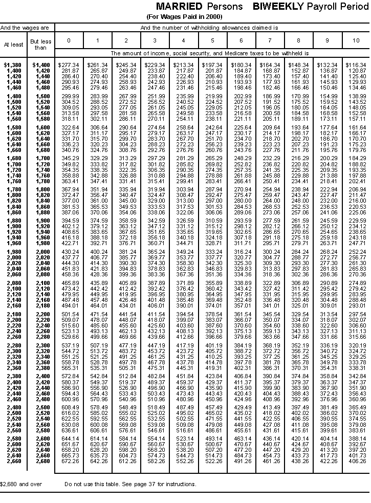 - Married Persons - Bi-Weekly, Paid Wages $1380 - $2680