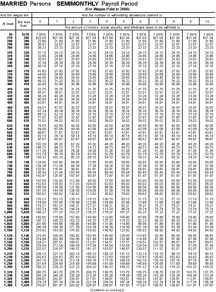 - Married Persons - SemiMonthly, Paid Wages $0 - $1420