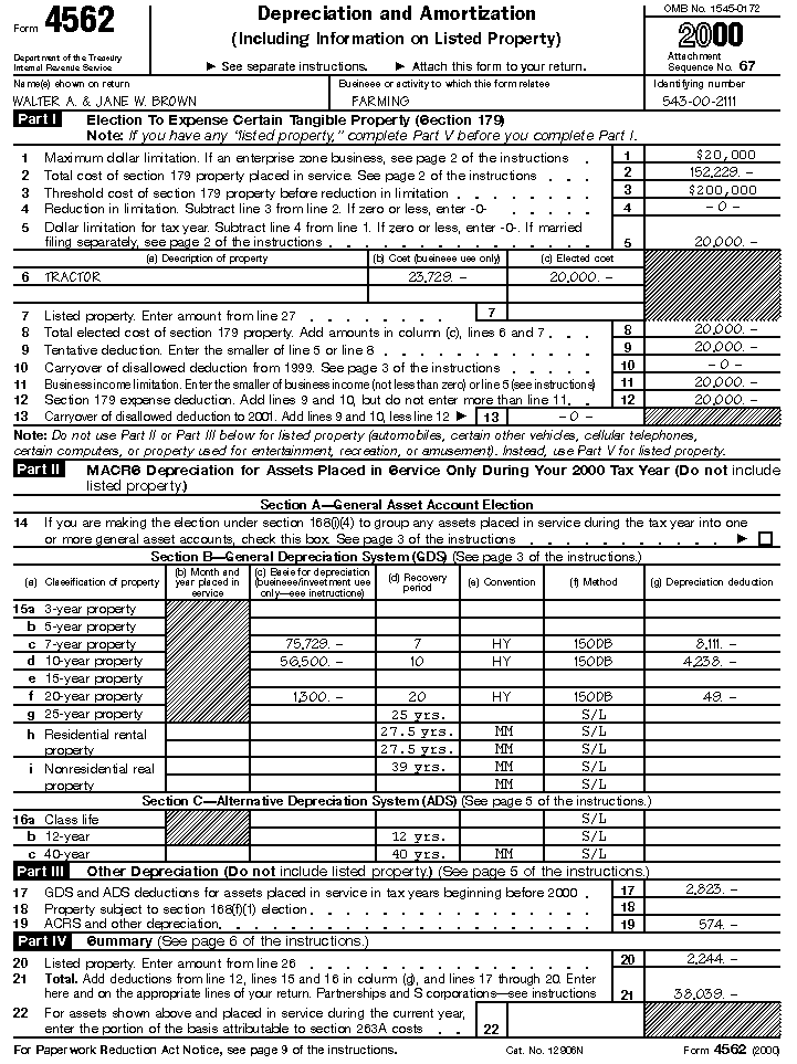 Worksheet that follows Form 4562. Mr. Brown has filed all