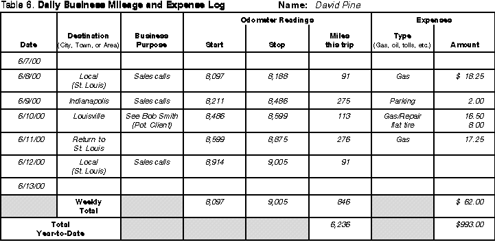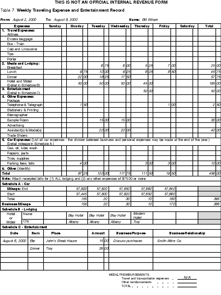 Table 7. Weekly Traveling Expense and Entertainment Record
