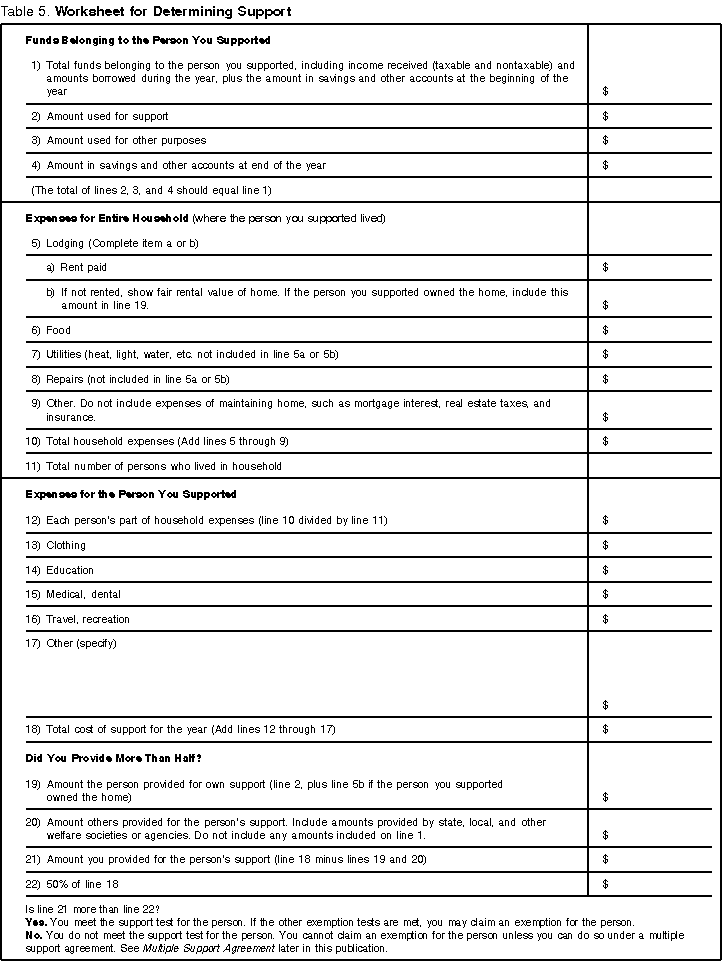 Table 6. Deduction for Exemptions Worksheet