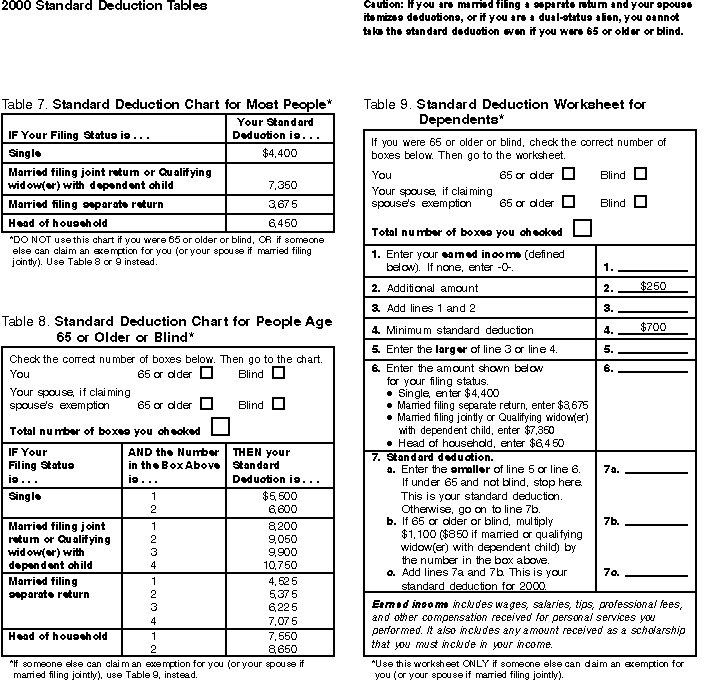 Standard Deduction Charts & Worksheet
