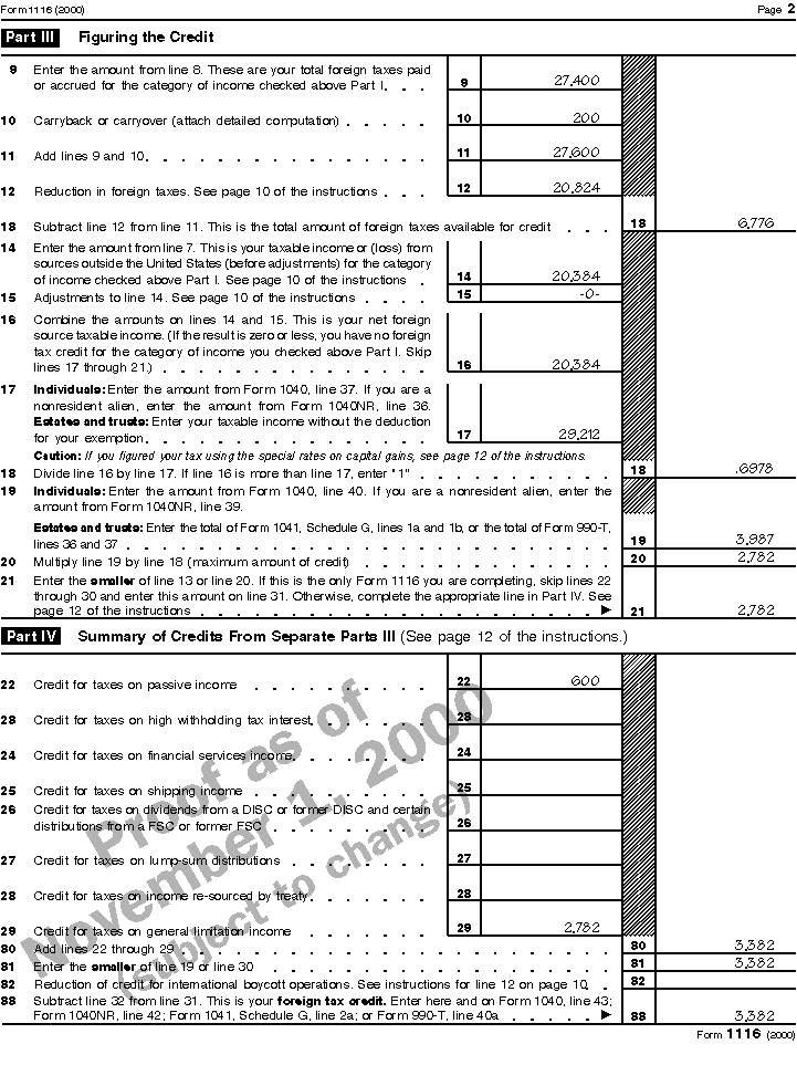 $2,782) and $200 of 1999 unused foreign taxes available as a carryover