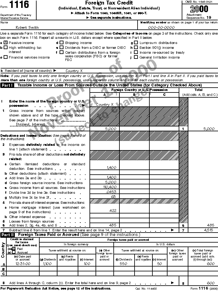 On this Form 1116, Robert figures the amount of foreign tax credit