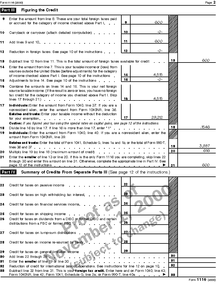 credit on the wages of $100,000. On the other Form 1116, he will mark
