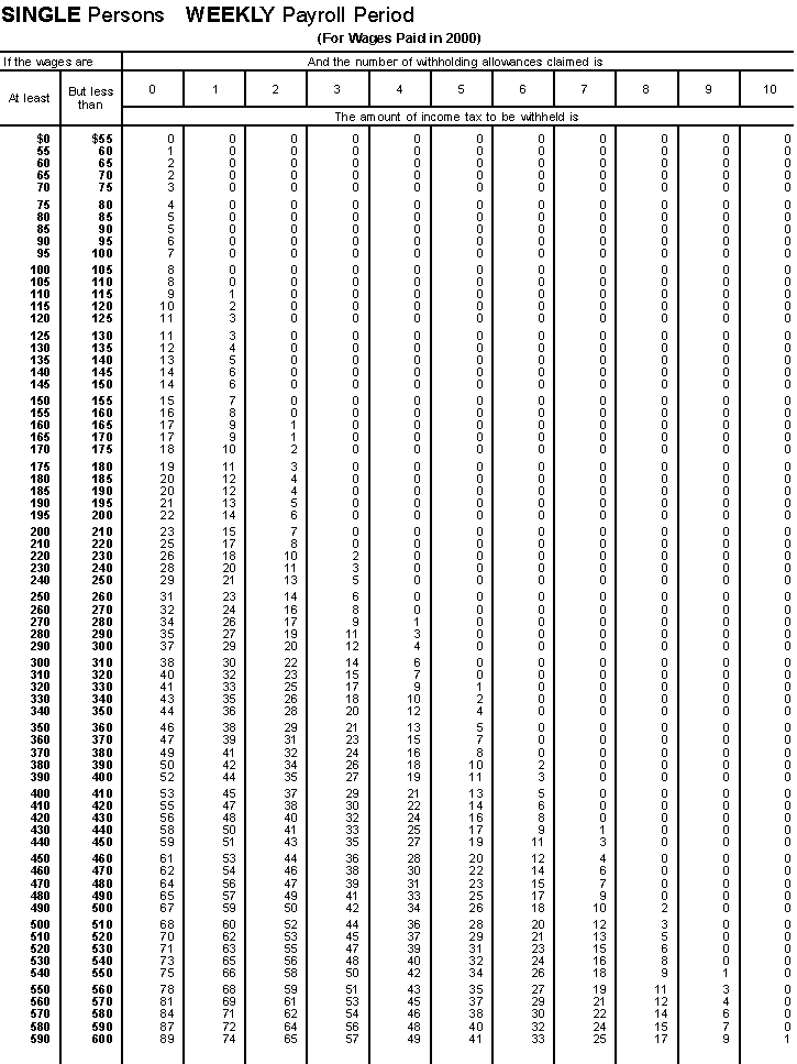 - Single Persons - Weekly, Paid Wages $0 - $600