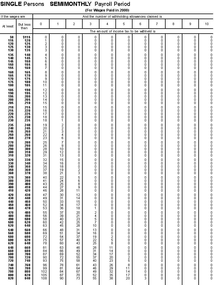 - Single Persons - SemiMonthly, Paid Wages $0 - $840
