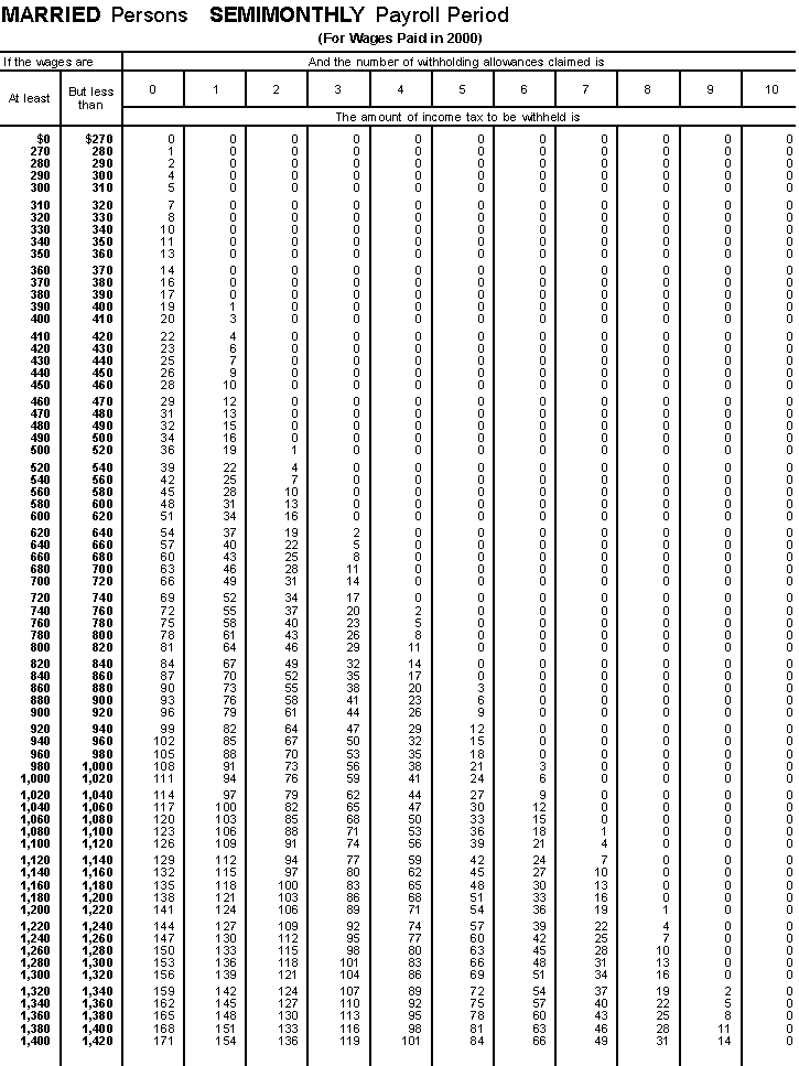 - Married Persons - SemiMonthly, Paid Wages $0 - $1420