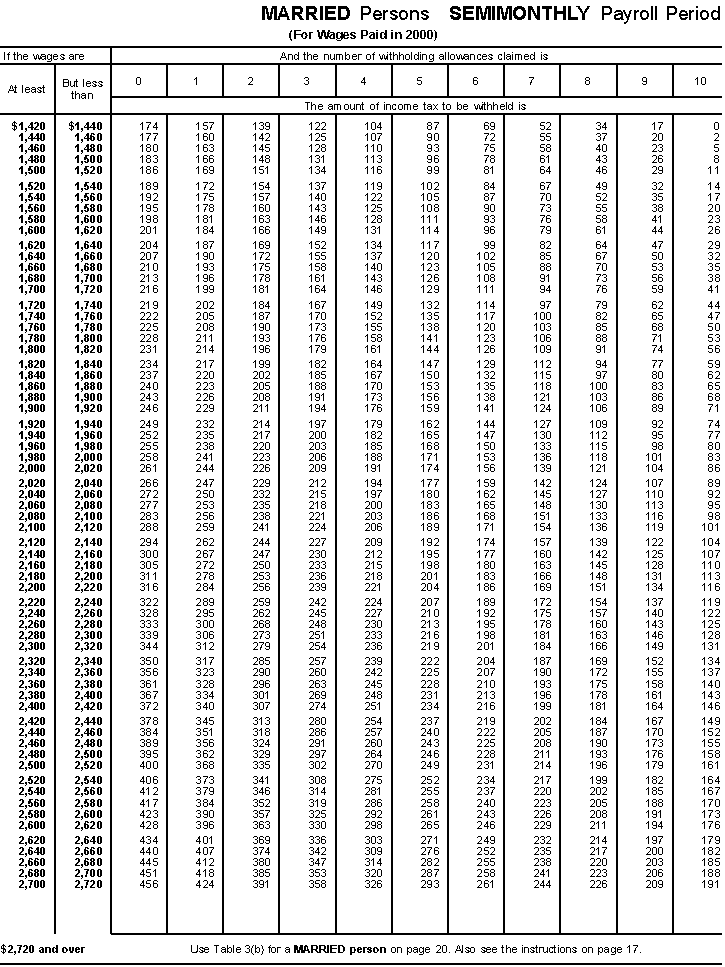 - Married Persons - SemiMonthly, Paid Wages $1420 - $2720