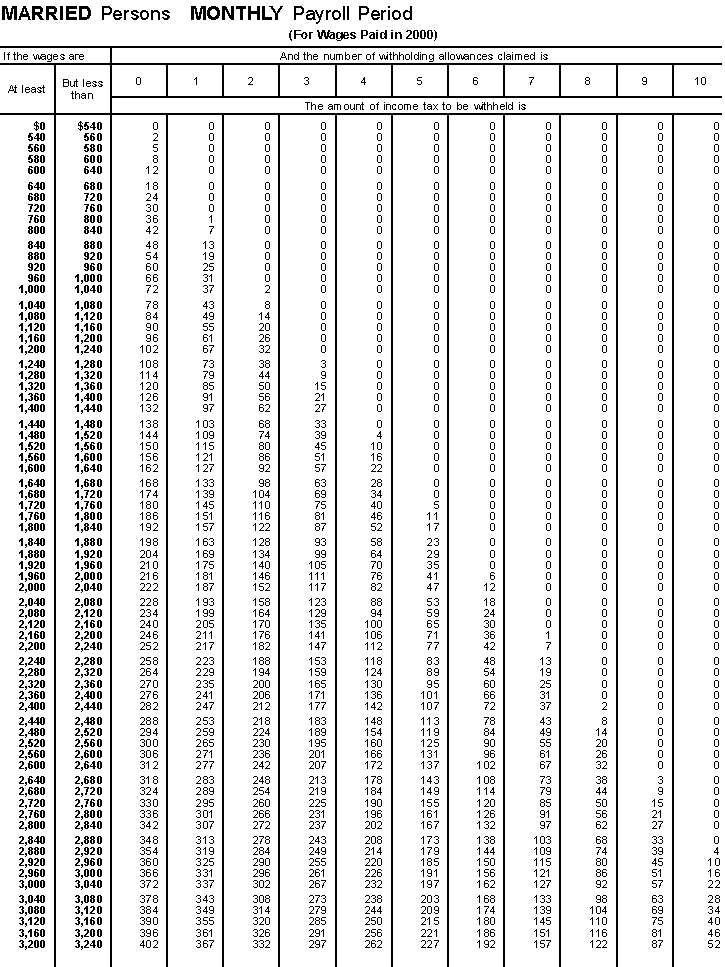 - Married Persons - Monthly, Paid Wages $3240 - $5840