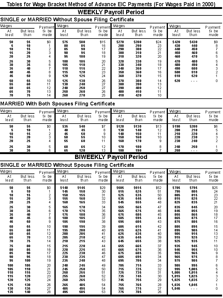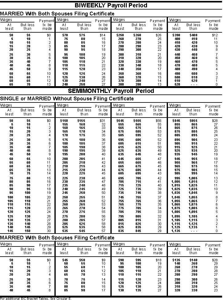 - Wage Bracket AEIC - Single & Married, Weekly - Bi-Weekly