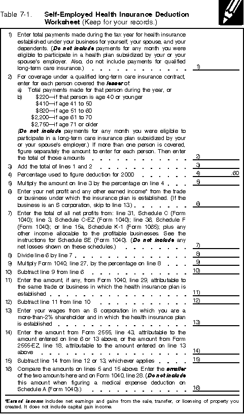 Table 7-1. Self-Employed Health Insurance Deduction Worksheet