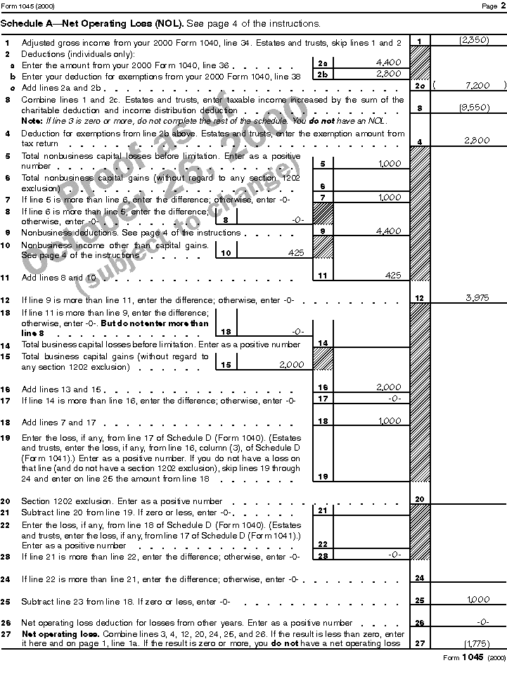 certain deductions. He uses Schedule A (Form 1045) to figure his NOL.
