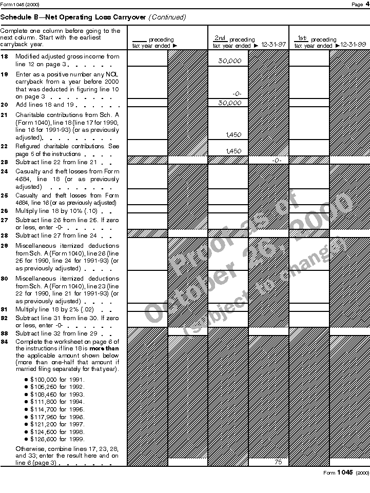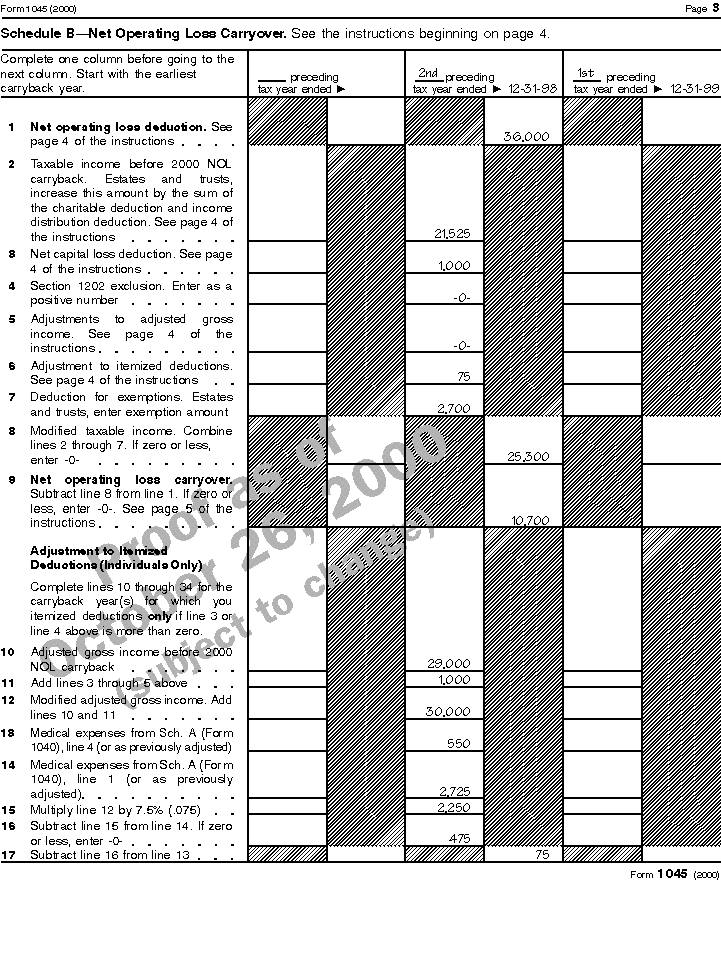 12/31/98," of Schedule B (Form 1045) to figure how much of her NOL