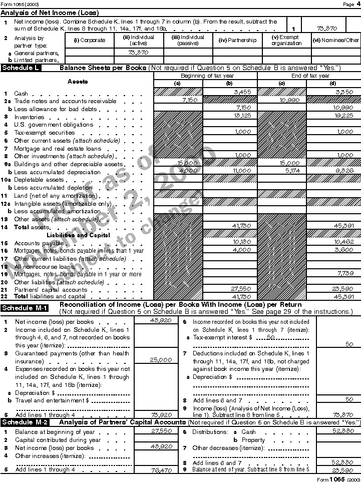 to partners (shown on line 10). Frank enters the $29,350 wages paid to