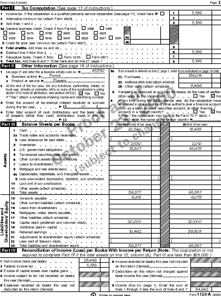 on Part I, do not apply to Rose Flower Shop. The tax of $5,196 is