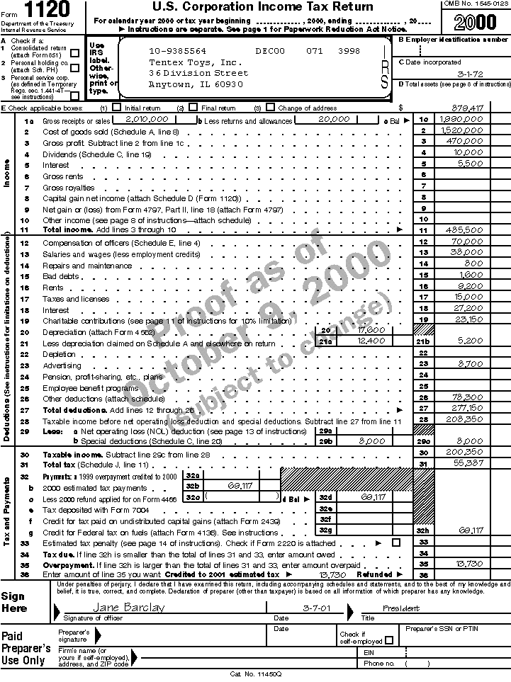 recorded in the corporation's books. Tentex enters $1,620 on line 8a.
