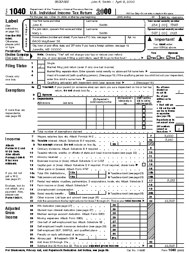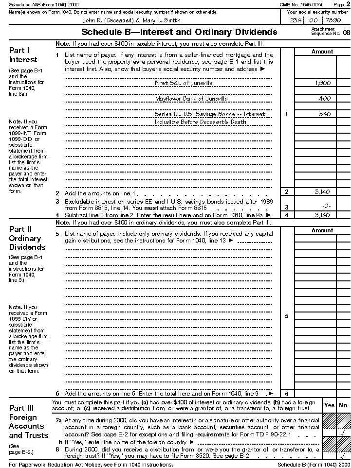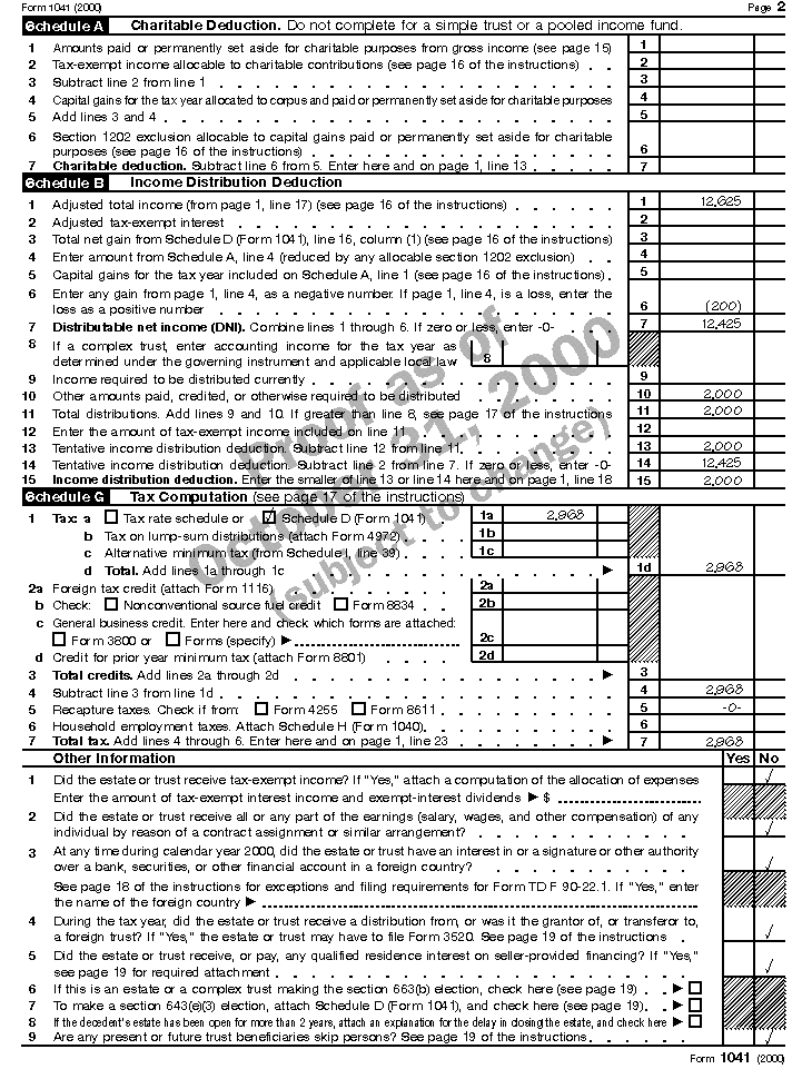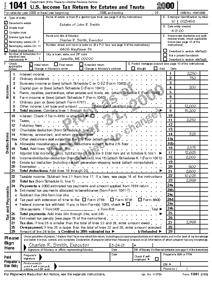 income tax return for the estate (Form 1041) for 2000. The only