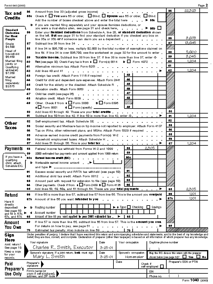 2001 income tax return for estate.