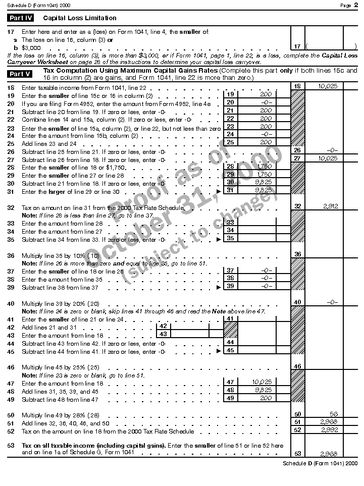 Part V of Schedule D (Form 1041) to figure the tax, $2,968, for 2000.