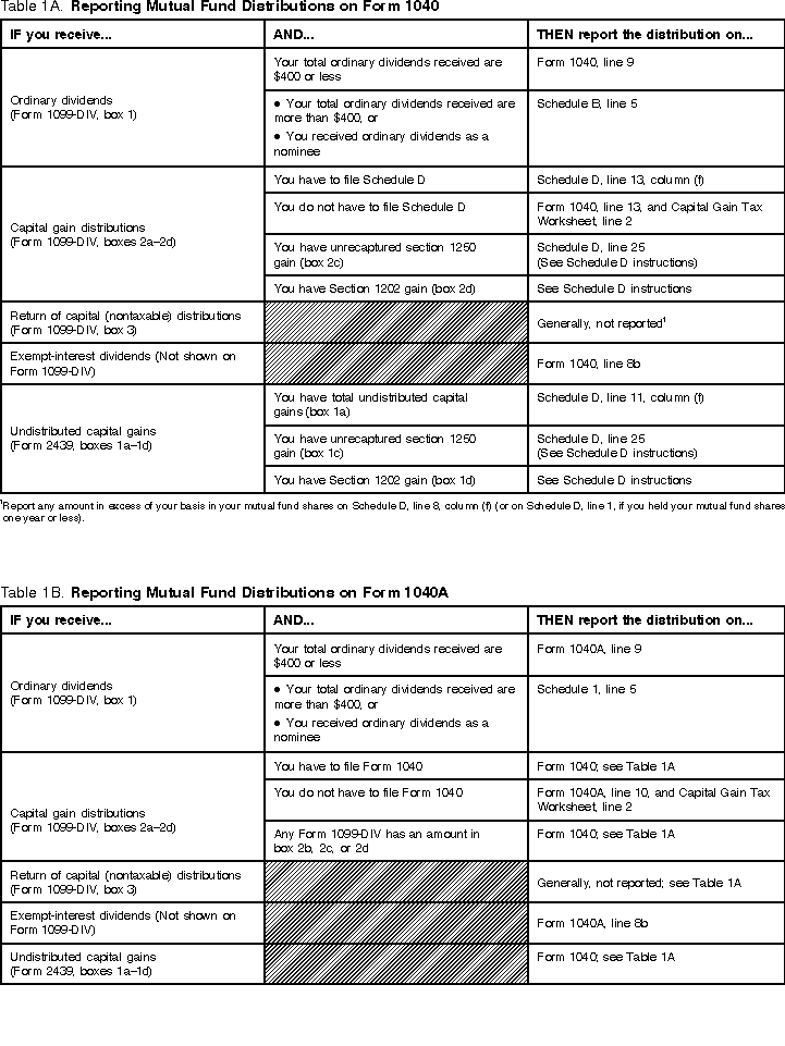 Reporting Mutual Fund Distributions on Form 1040 and Form 1040A