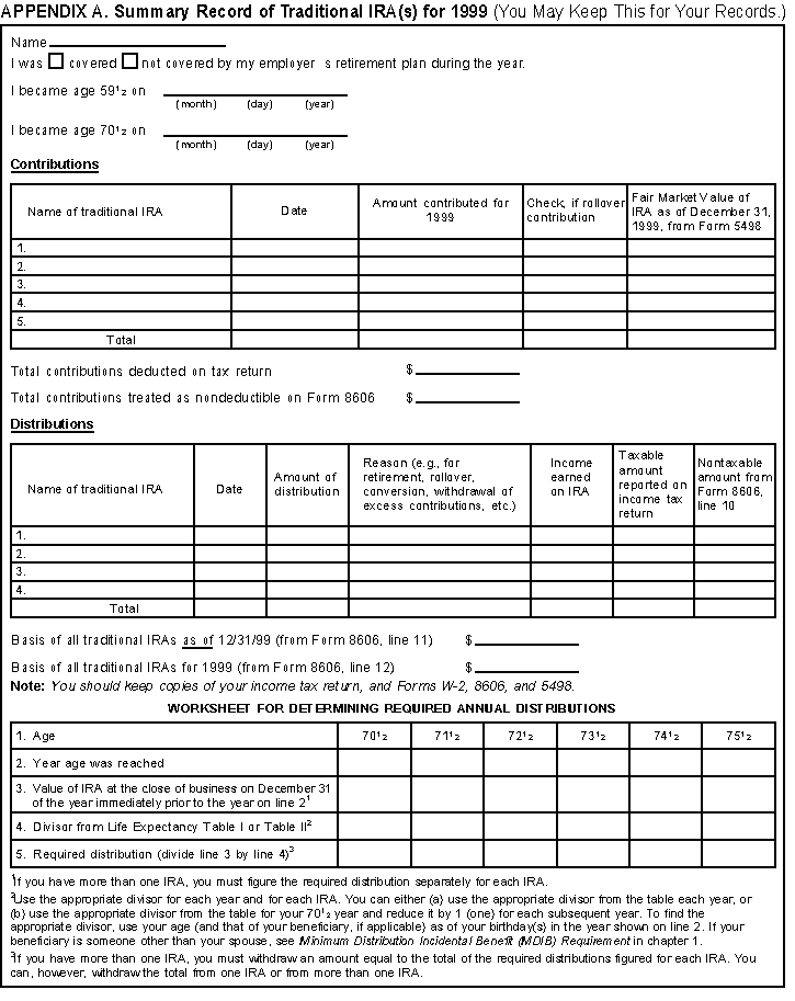 Traditional IRA(s) for 2000 and Worksheet For Determining