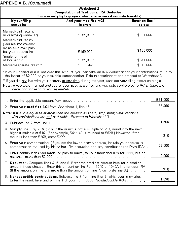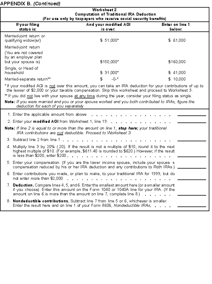 - Worksheet 2, Computation of Traditional IRA
