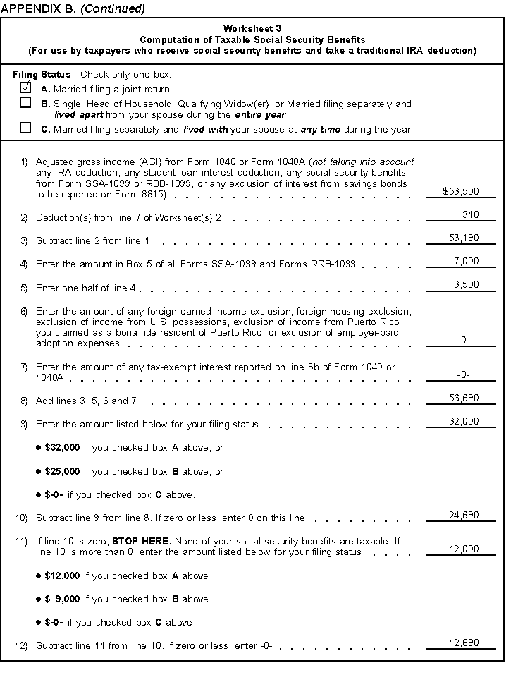 - Worksheet 3, Computation of Taxable Social Security