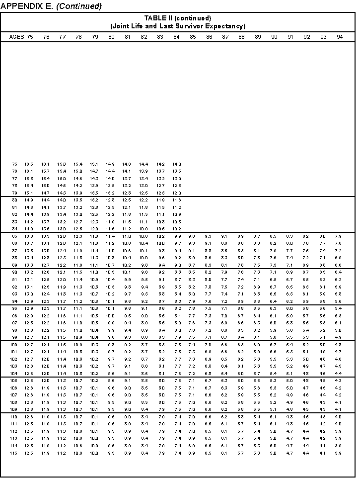 - Appendix E -- Life Expectancy Tables